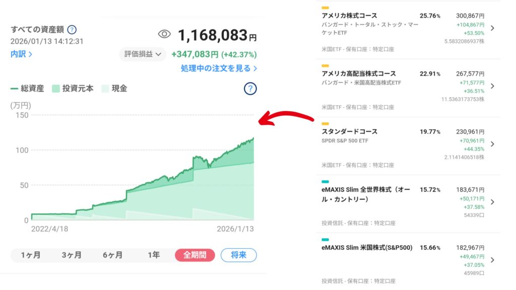 | 運用コース | 米国ETF 暗号資産 | 米国株 米国ETF 日本株 日本ETF 投資信託 | 米国株 米国ETF 日本株 日本ETF 投資信託 |