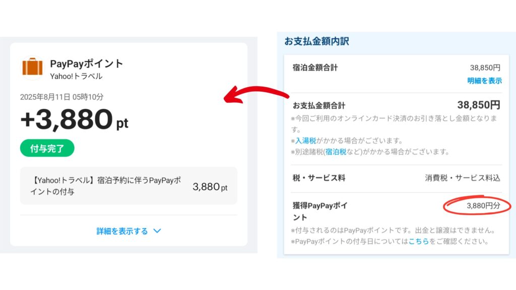 「PayPayポイント(通常)」が付与されるのは、チェックアウト当日です。