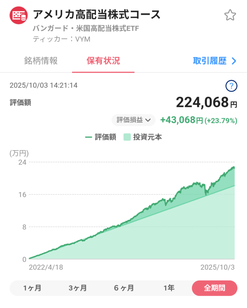 毎週コツコツと米国ETFを積み立てた結果、2025年7月20日時点の運用状況と今までの配当金は以下の通りです。