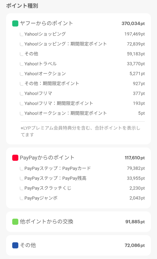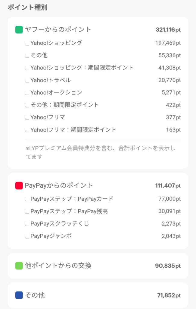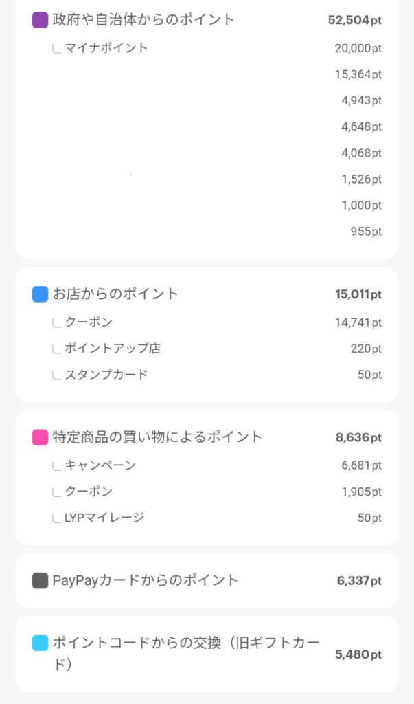 今までに獲得した「PayPayポイント」の内訳は以下の通りです。