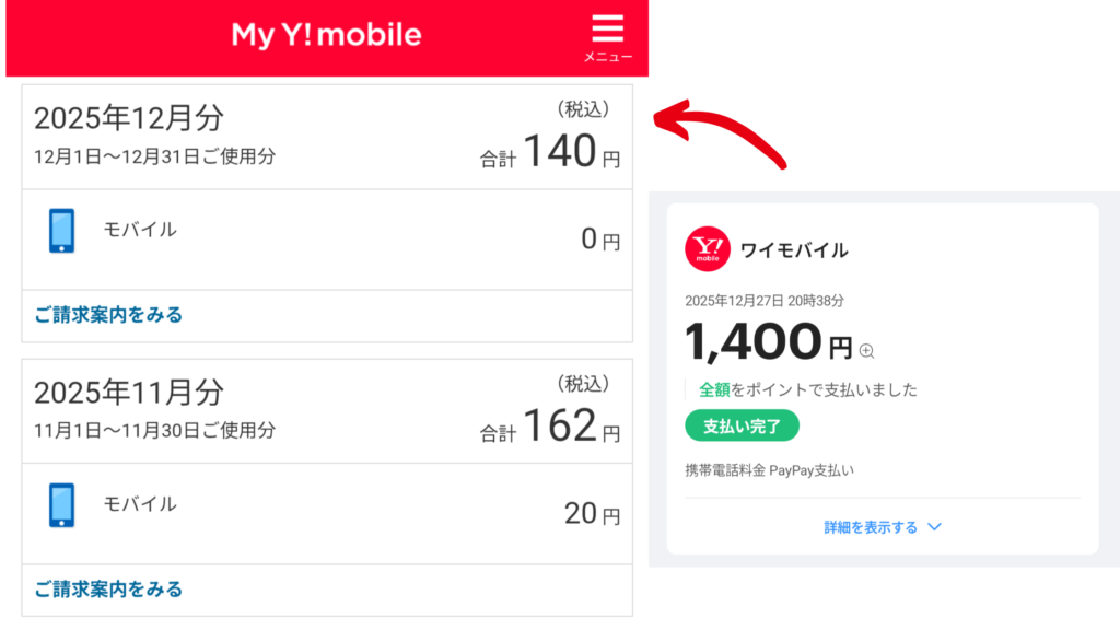 その結果、毎月のスマホ代はなんと140円。(ポイントで支払えない消費税以外は、すべてポイント払い。)